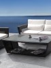 This is a 4 piece modern black and white patio set that includes everything except for the accessories. It features a modern sleek design and is waterproof for added protection.
