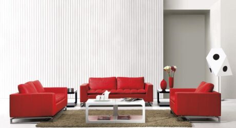Manhattan Modern Red Leather Sofa Set