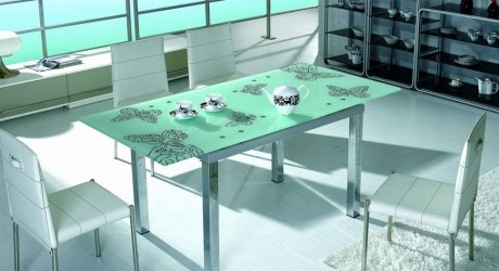 The CT-61A Extend-able Dining Table & 4 Chairs is a thing of beauty that is unmatched in its design. The already marvelous green frosted glass table top is made even lovelier by the floral pattern ...