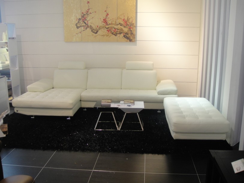 Black Design Co » Products Page » Categories » Collections » Savannah Modern White Full Leather Sectional Sofa with Headrests and Ottoman