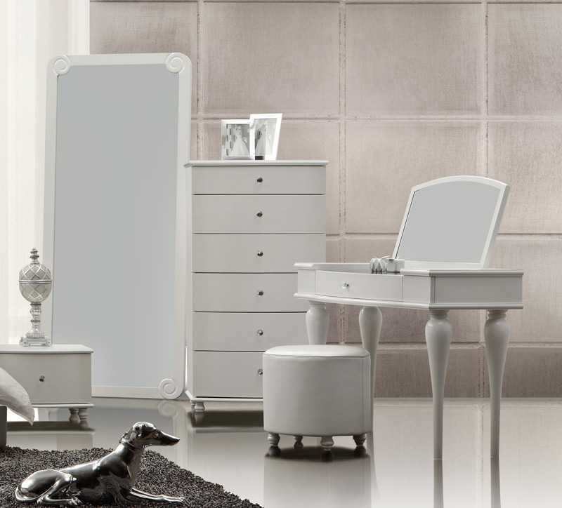 Dimensions: Bed (inside measurements): W:70.9" x D:78.7" | NightStand: W:19.7" x D:16.5" x H:13.4" | Bench: W:47.2" x D:16.5" x H:14.2" | Dresser: W:42.9" x D:19.7" x H:29.9" | Dresser Stool: W: x D:17.7" x H:16.5" | Drawer Chest: W:27.6" x D:18.9" x H:49.2" | Couch: W:54.3" x D:26" x H:34.7" | Full Mirror: W:31.5" x D:1.6" x H:72.8" | Cabinet: W:36.2" x D:20.1" x H:63" | TV Stand: W:70.9" x D:18.9" x H:18.1" |