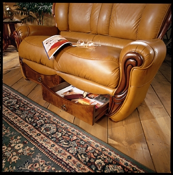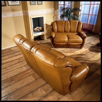 This fabulous and acomidating Italian sofa set features a lush full grain italian leather walnut wooden frame.