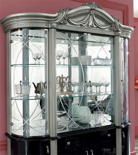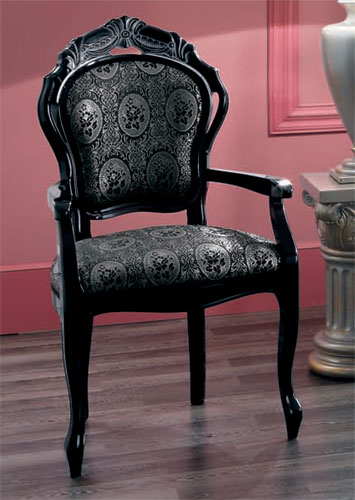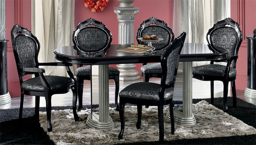 Barocco Black Dining set mixes traditional and contemporary details for an edgy, yet sophisticated look. Set includes table with extension, two arm chairs, and four side chairs. Made in Italy by Camelgroup. Coordinating pieces available below.