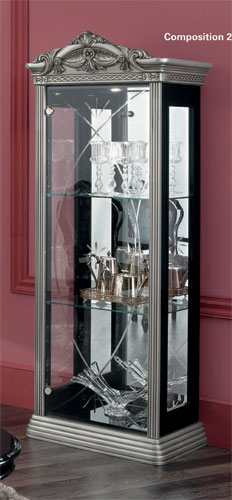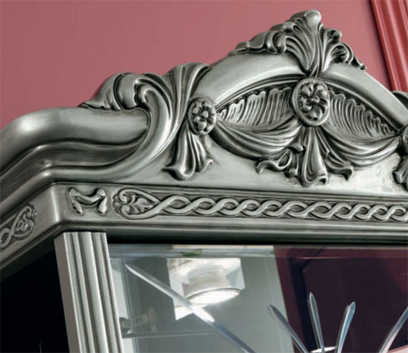 Dimensions: Dining Table: L 73" x D 42" x H 31" with 18" Extension | | Arm Chair: L 23" x D 22" x H 41" | | Side Chair: L 23" x D 22" x H 41" | | 4 Door China: L 65" x D 18" x H 87" | | Buffet: L 65" x D 18" x H 31" | | Mirror: L 58" x H 42" stand: L 55" x H 6" | | Corner Cabinet: L 27" x D 17" x H 81" | | 1 Door China: L 26" x D 17" x H 75" | |