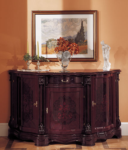Traditional Italian dining set. Set includes table with extension, two arm chairs, and four side chairs. Regina comes in three fantastic combinations to suit your taste and style, adding a quasi charm of the past a la classica. Made in Italy by Bakokko. Coordinating pieces available below.