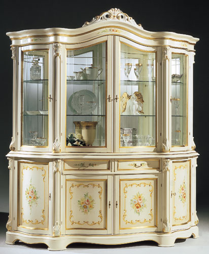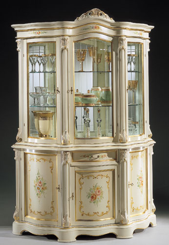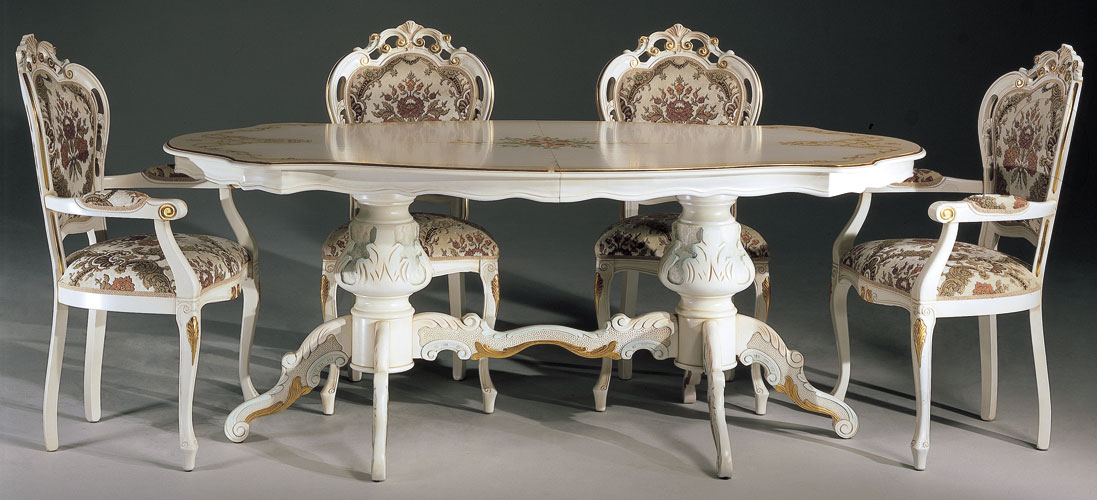 Traditional Italian dining set. Set includes table with extension, two arm chairs, and four side chairs. Regina comes in three fantastic combinations to suit your taste and style, adding a quasi charm of the past a la classica. Made in Italy by Bakokko. Coordinating pieces available below.