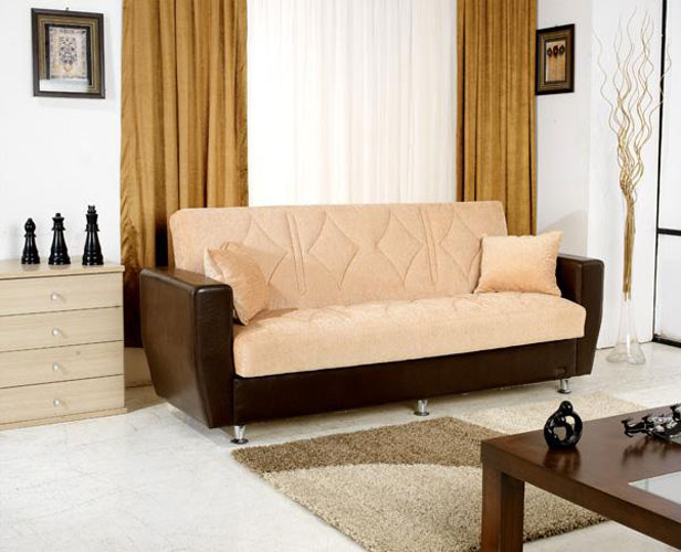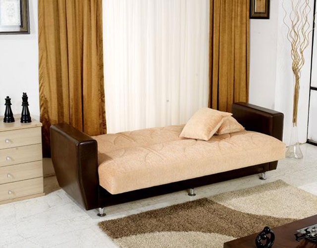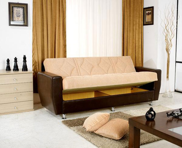 Fabric inner spring sofa bed with storage system
